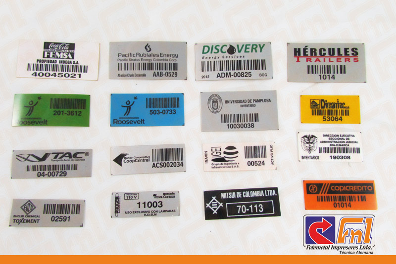 se adapta fácilmente a superficies planas y curvas, tienen un poderoso adhesivo que la fija muy bien a la superficie donde se van a instalar. Cada placa lleva impreso el logotipo del cliente en color negro o la información que el cliente desee que se imprima. Cada placa llevara el código de barras impreso para fácil lectura.
