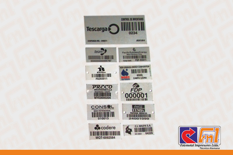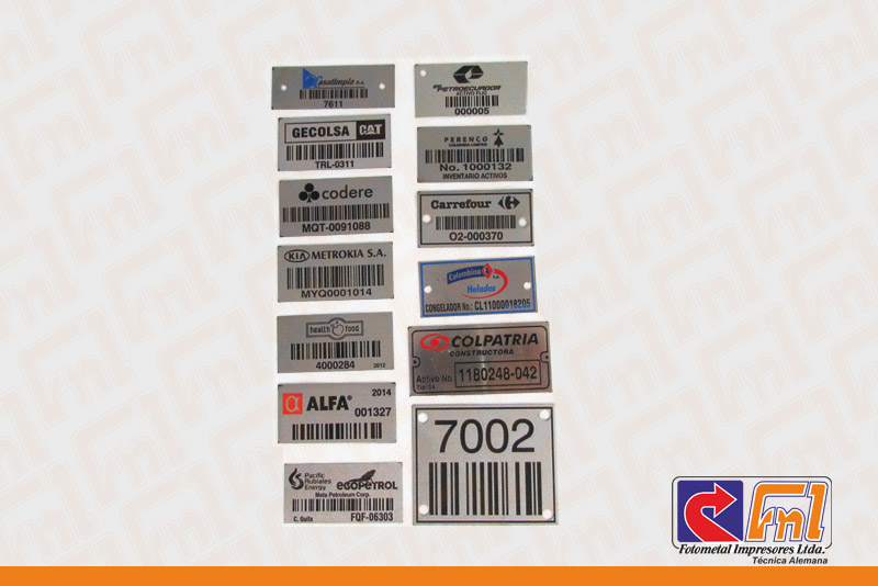 Esta es una placa de excelente calidad. se adapta fácilmente a superficies planas y curvas, tienen un poderoso adhesivo que la fija muy bien a la superficie donde se van a instalar. Cada placa lleva impreso el logotipo del cliente en color negro o la información que el cliente desee que se imprima. cada placa llevara el código de barras impreso para fácil lectura